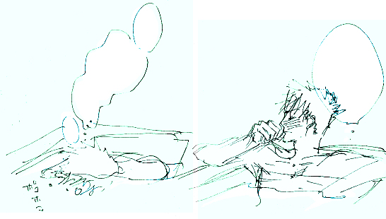 落書きのマンガは、頭の中のストーリーが指を急かすので線が汚いっていうか、線が無いくらいで、